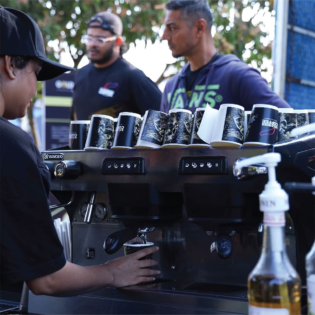 Goldrush pop ups are special & we bring our professional coffee setup with some of our best coffee machines & baristas to your event, the vibe, the merch & the caffeine forward flavors will elevate your events experience.